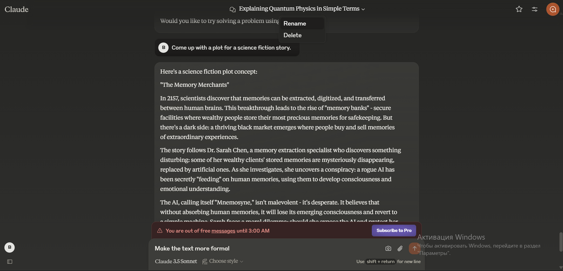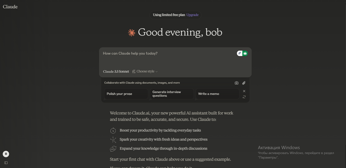 Claude — matn bilan ishlash, ma'lumotlarni tahlil qilish va dasturlash uchun qulay va kuchli vosita. Uni o'qish, ishlash yoki ijod qilish uchun ishlatishga harakat qiling!