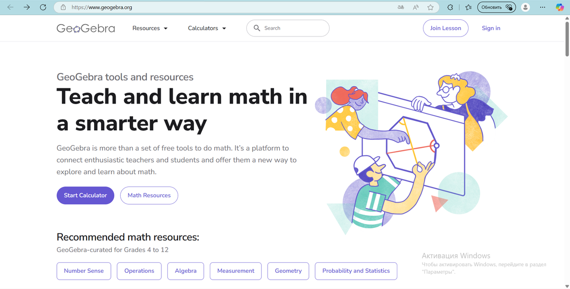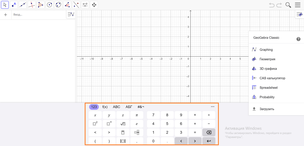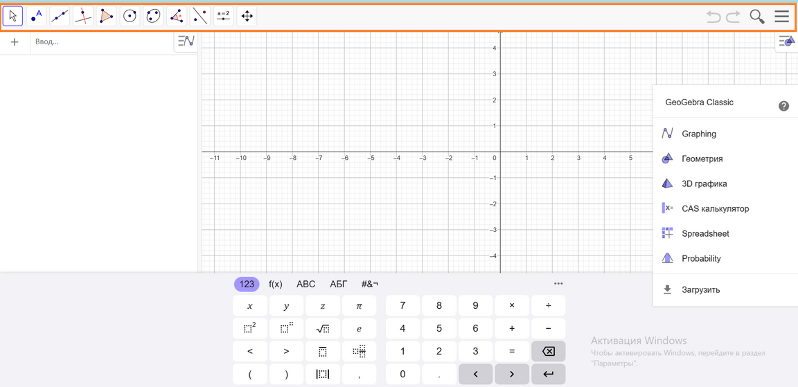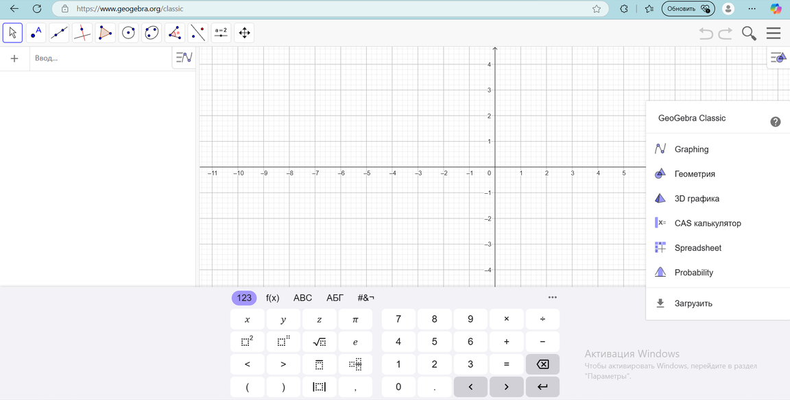 GeoGebra rasmiy veb-saytiga o'ting. Kerakli vositani tanlang (GeoGebra Classic, geometriya, grafikalar va boshqalar).