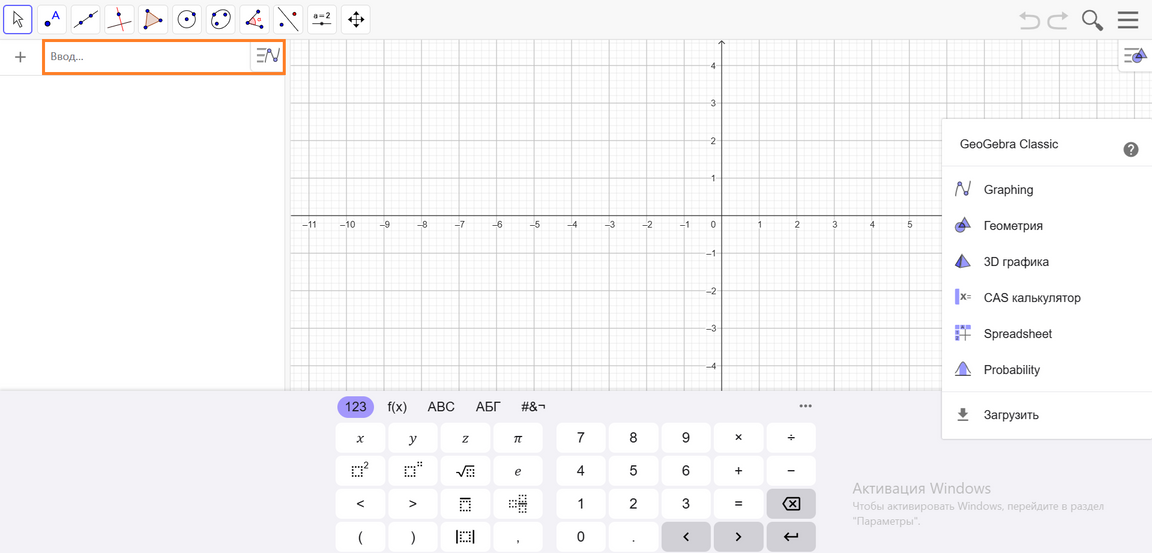 Ko'rsatmalarga muvofiq dasturni yuklab oling va o'rnating. O'rnatishdan so'ng GeoGebra-ni oching.