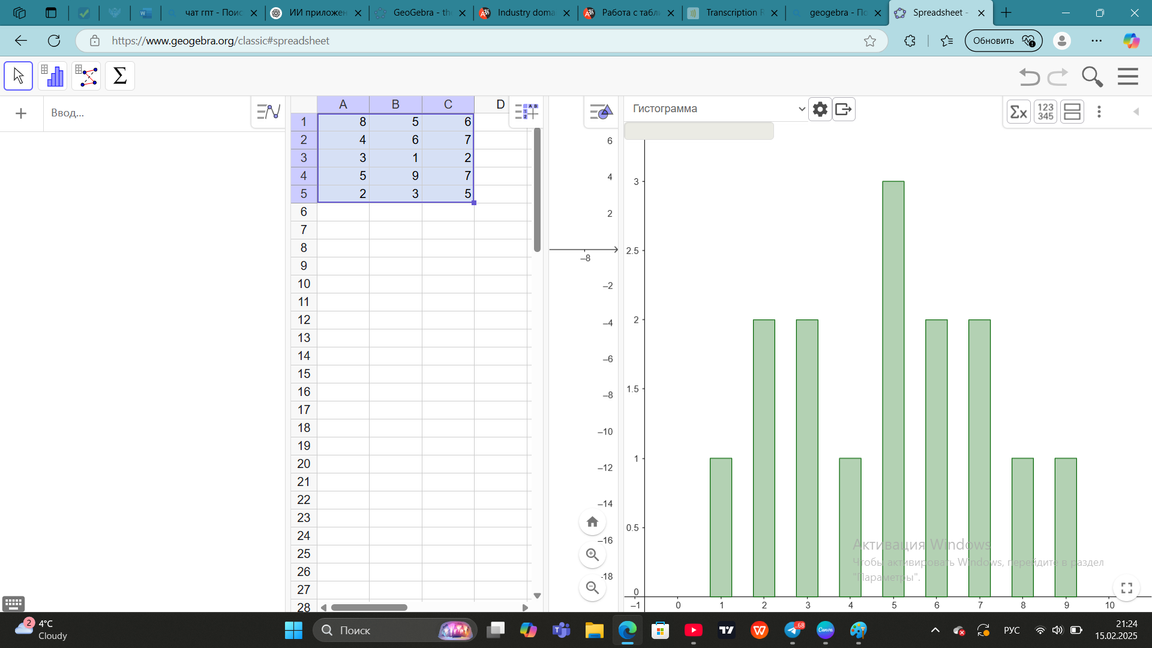 "Qiymatlar jadvali"ni oching. Ma'lumotlarni kiriting (masalan, nuqta koordinatalari). Diagrammalar yoki regressiya modellarini yarating.