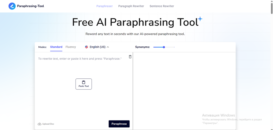 Paraphrasing Tool — bu sun'iy intellekt (AI) yordamida matnlarni parafrazlash uchun mo'ljallangan onlayn xizmat