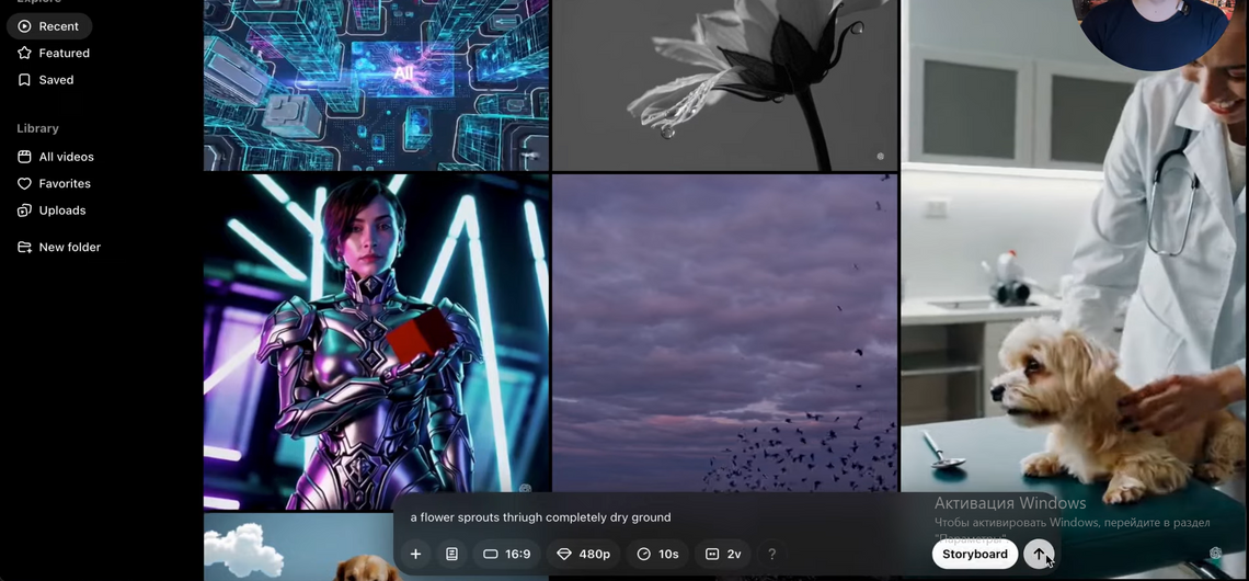 Matn so'rovini kiritish: tizimga kirganingizdan so'ng, siz video yaratish interfeysiga o'tasiz. Kerakli videoning batafsil matnli tavsifini kiriting. Masalan: "quruq erdan o'sayotgan o'simlik".